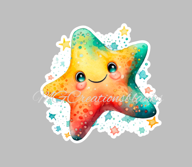 Starfish clear acrylic blank for badge reel with matching vinyl decal, acrylic blank, decal, vinyl decal, Starfish decal, acrylic