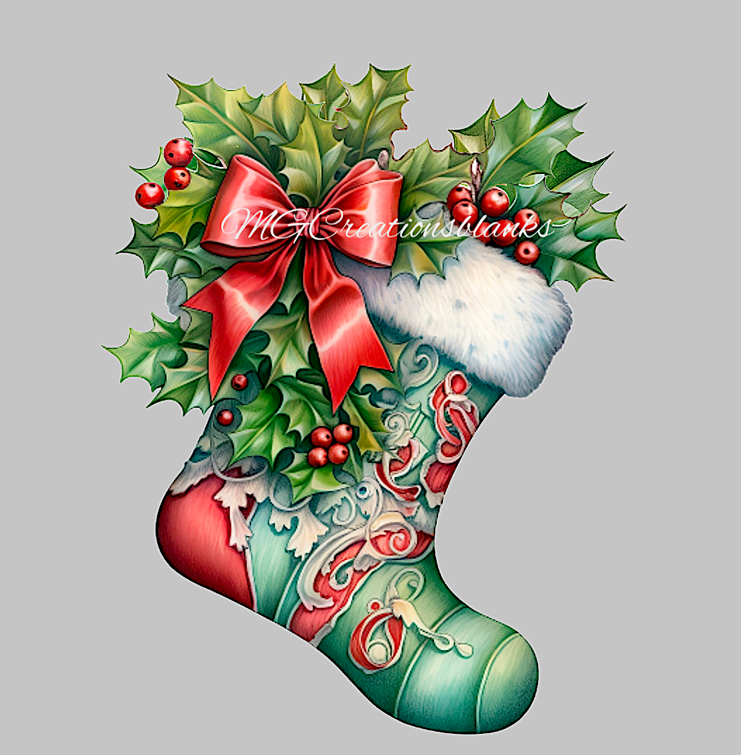 Stocking clear acrylic blank for badge reel with matching vinyl decal, acrylic blank, decal, vinyl decal, Christmas stocking decal, acrylic, Christmas stocking acrylic blank