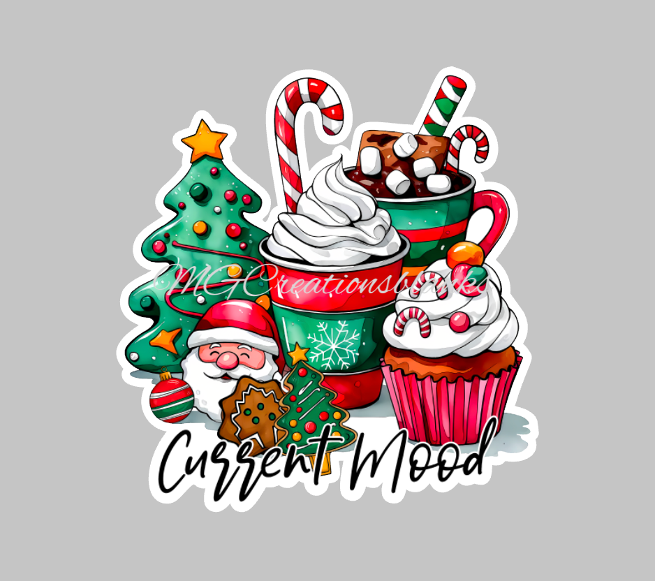 Christmas coffee current mood acrylic blank for badge reel with matching vinyl decal, acrylic blank, decal, vinyl decal, latte decal, acrylic, coffee, Merry Christmas coffee