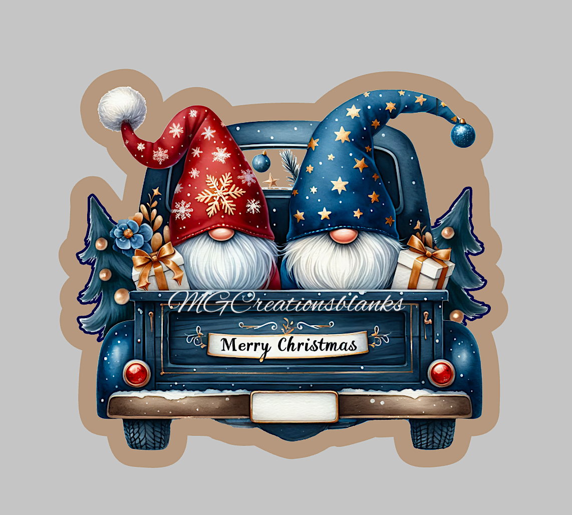 Christmas Gnomes Truck acrylic blank for badge reel with matching vinyl decal, acrylic blank, decal, vinyl decal, Santa decal, acrylic, Christmas truck, Merry Christmas
