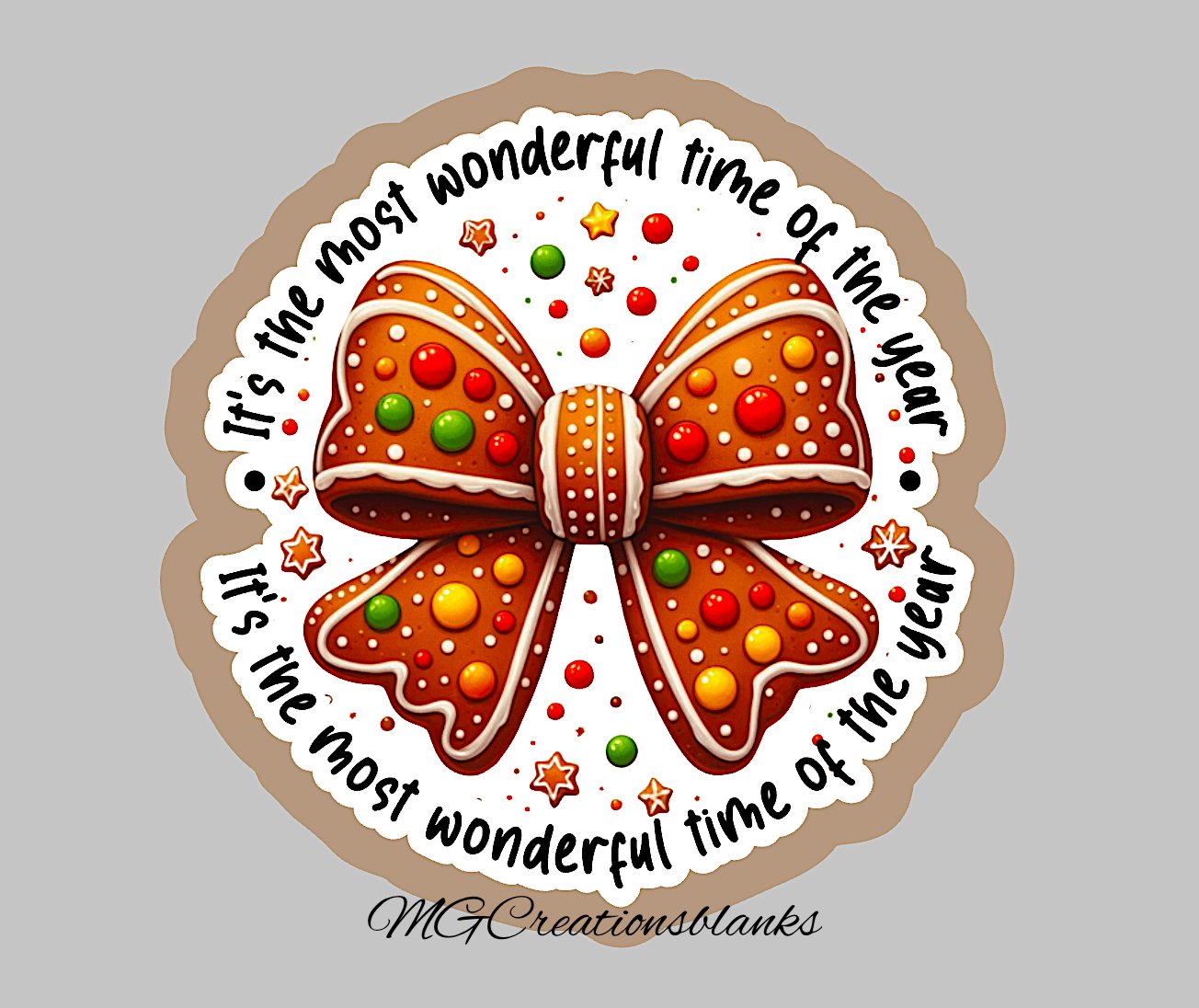 Gingerbread cookie bow clear acrylic blank for badge reel with matching vinyl decal, acrylic blank, gingerbread cookie decal, Gingerbread croquette bow vinyl decal, Gingerbread croquette bow clear acrylic blank