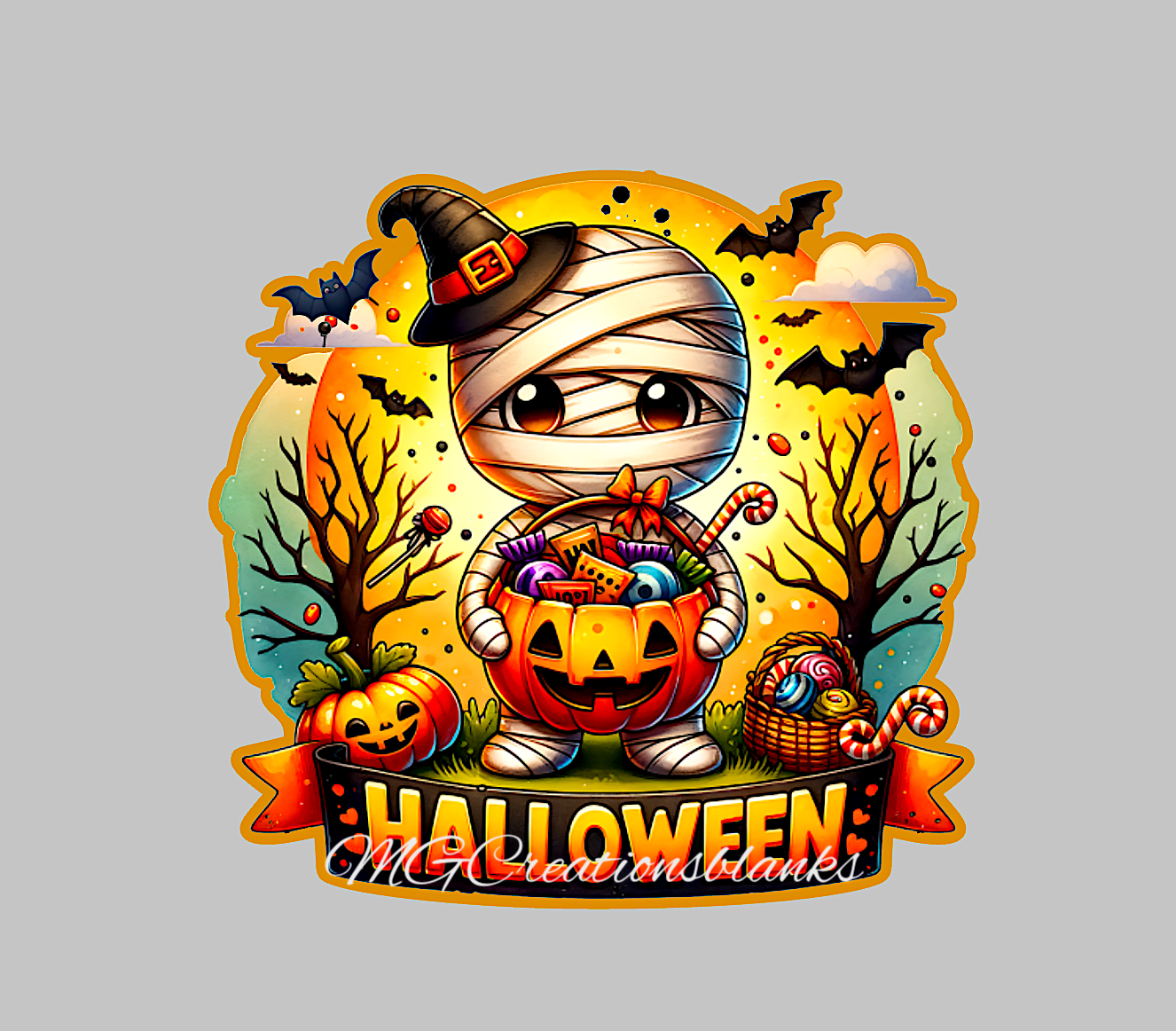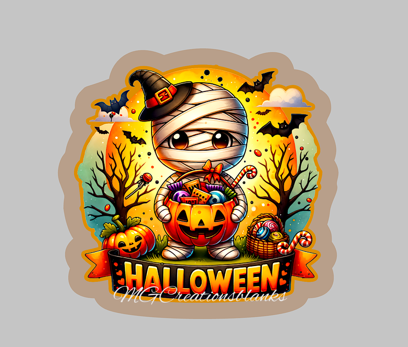 Halloween mummy clear acrylic blanks for badge reels with matching vinyl decal, happy halloween acrylic blank, halloween vinyl decal, Halloween mummy acrylic blank, Happy Halloween, mummy