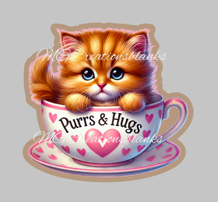 Purrs & Hugs clear acrylic blank for badge reels with matching vinyl decal, Valentine cat acrylic blank, Cat decal, vinyl decal, Valentine Cat acrylic blank