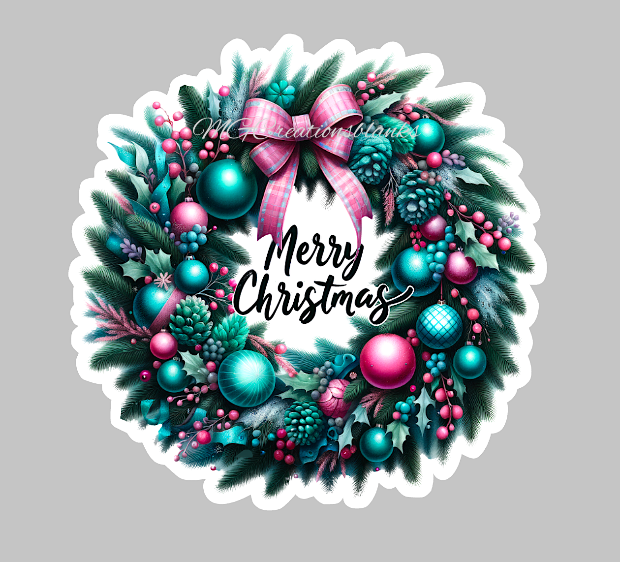 Christmas wreath clear acrylic blank for badge reel with matching vinyl decal, Christmas wreath acrylic blank, Christmas wreath decal, vinyl decal, Santa decal, acrylic, Christmas acrylic blank