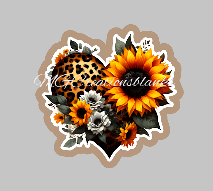 Leopard sunflower heart acrylic blanks for badge reels & vinyl decal, acrylic blank, decal, vinyl decal, Leopard clear cast acrylic, leopard badge reel