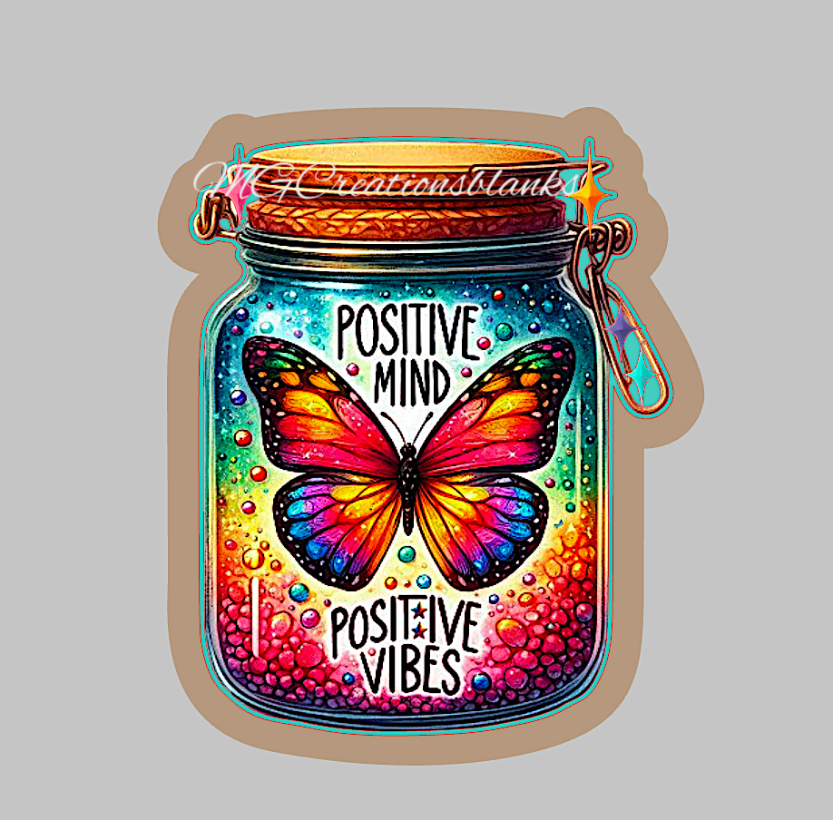 Positive mind clear acrylic blanks & vinyl decal, acrylic blank, decal, Positive mind vinyl decal, cast acrylic, motivational clear acrylic blank, clear acrylic blank badge reel, Positivity acrylic blank