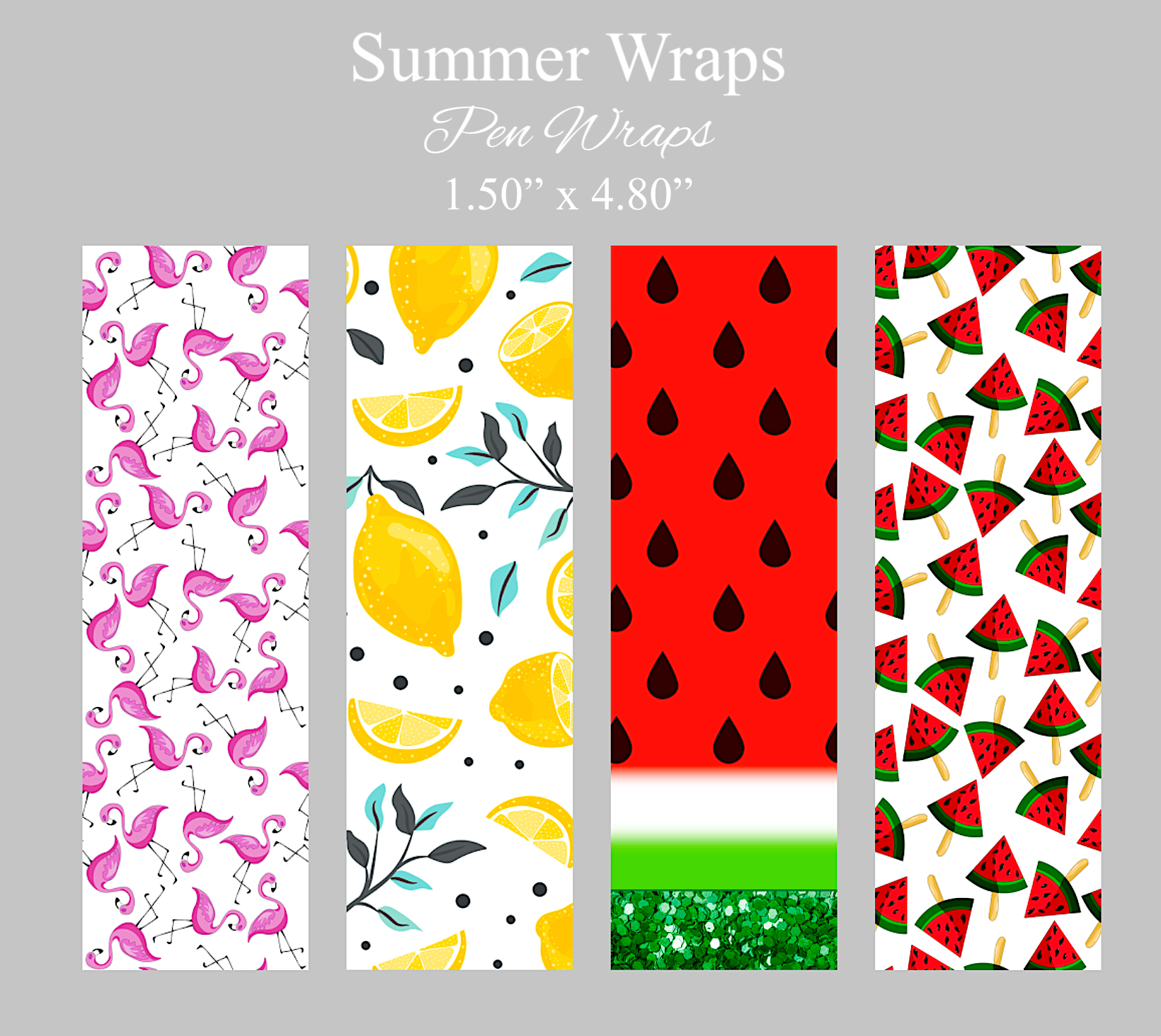 Summer pen wrap vinyl sheet, watermelon pen wrap, lemon pen wrap vinyl print sheet, flamingo pattern vinyl for pens, summer pen wrap craft vinyl