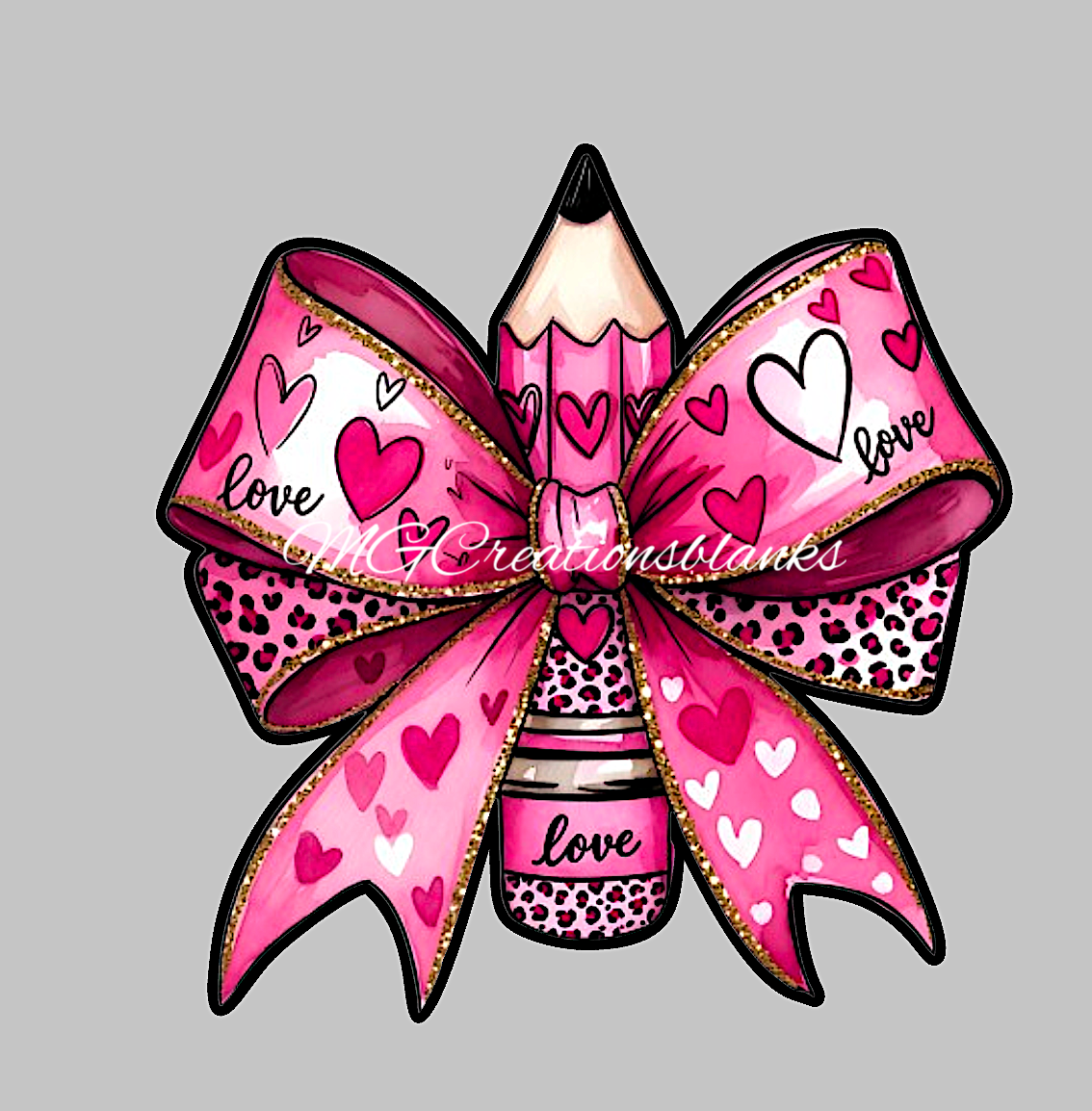 Teacher Valentine Pencil bow clear acrylic blank for badge reels with vinyl decal, Valentine teacher bow acrylic blank, Valentine Teacher vinyl decal, Valentine Teacher acrylic blank, Pencil acrylic blanks